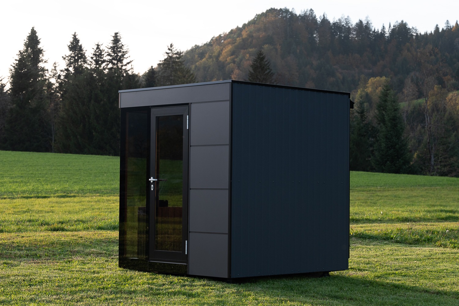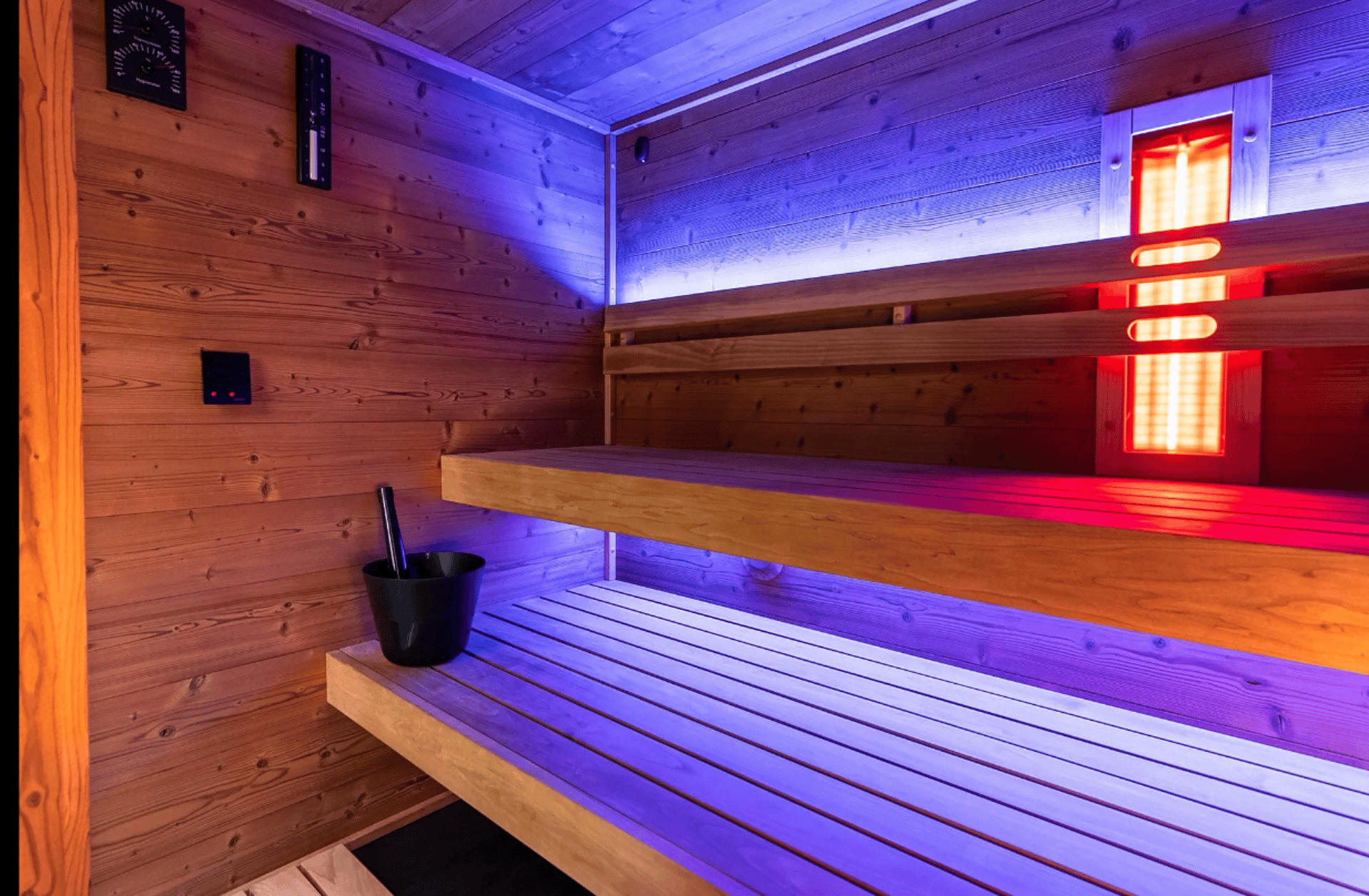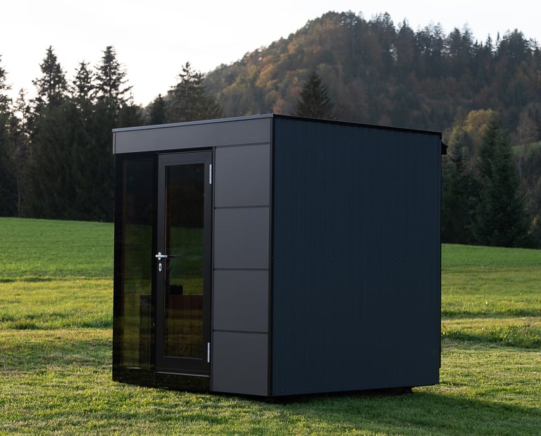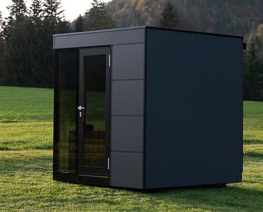 Una sauna diseñada para fundirse con tu entorno natural, creando un espacio de relajación al aire libre con un estilo elegante y acogedor.