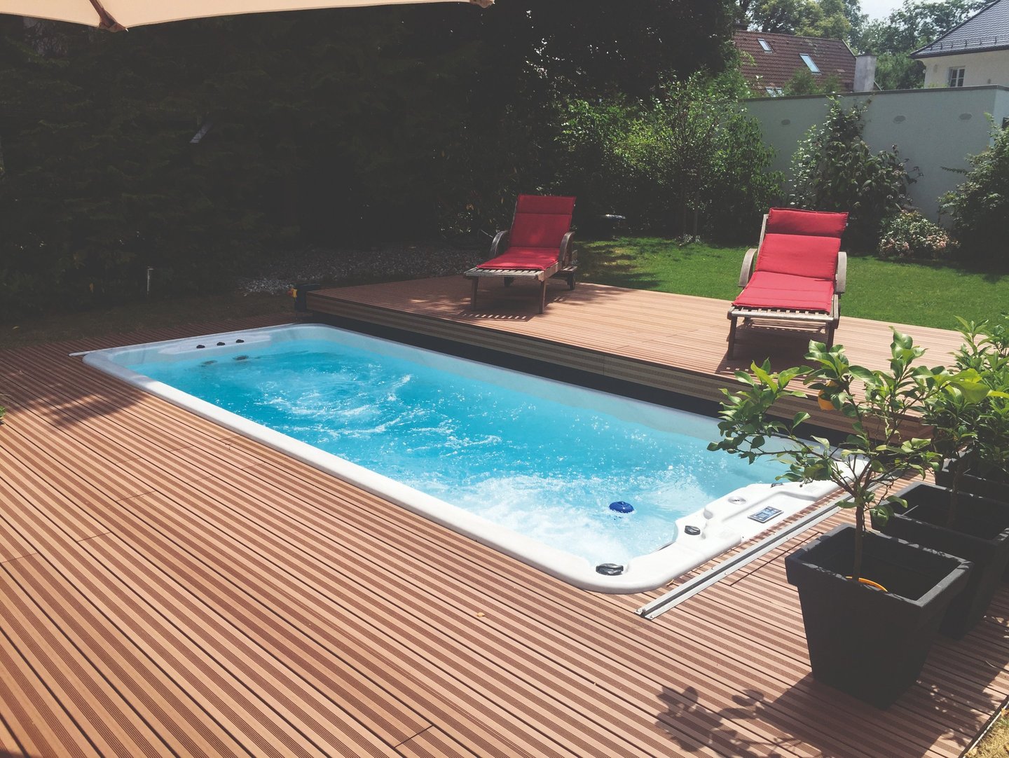 Swim spa integrado en el suelo con cubierta